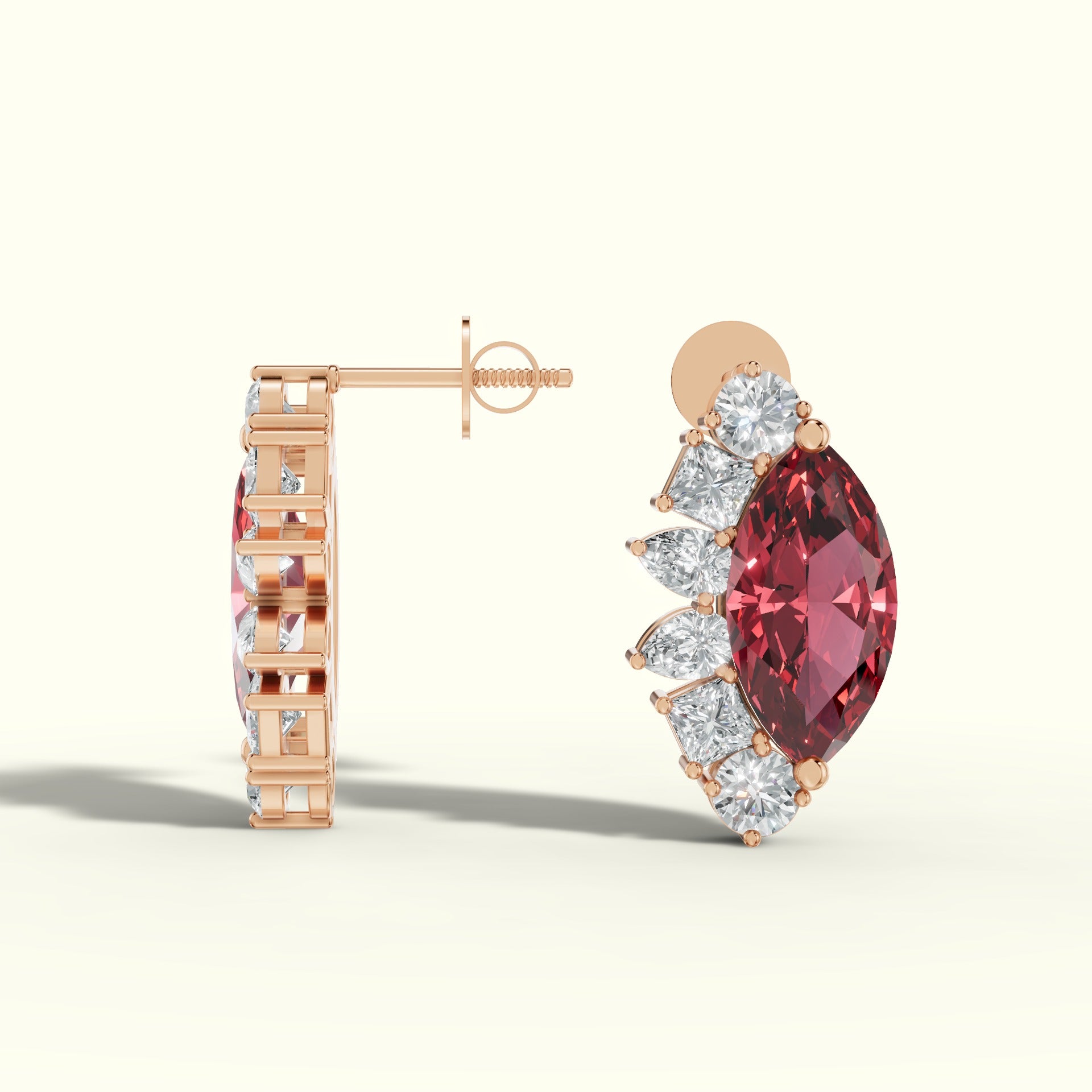 - Type of Stones: Marquise-Cut Pink Diamonds, Princess-Cut White Diamonds, Pear-Cut White Diamonds, Round White Diamonds