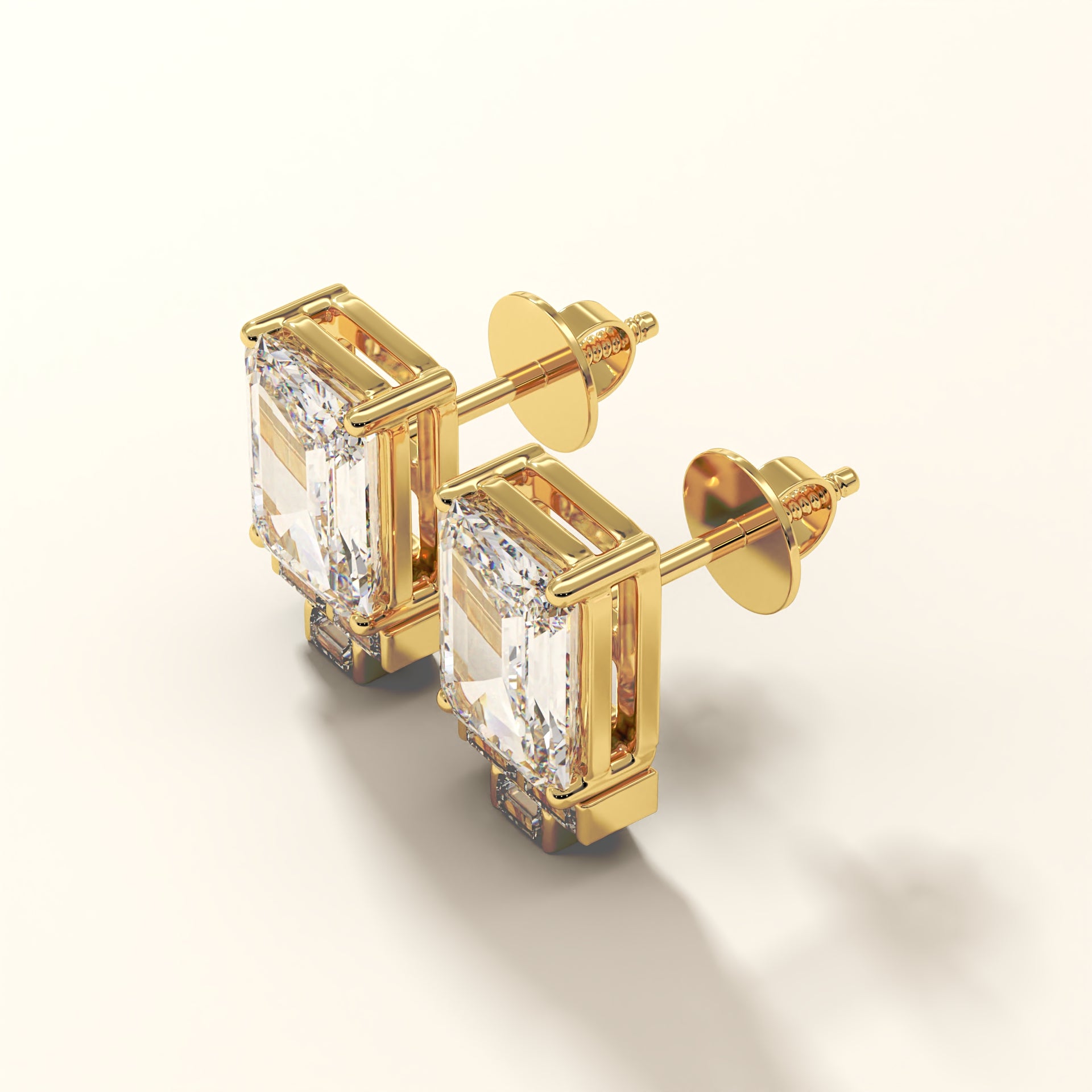 Crafted in 18K gold, Datum Frame pairs emerald-cut center diamonds with precisely aligned baguette diamonds that act as a structural base rather than decoration.