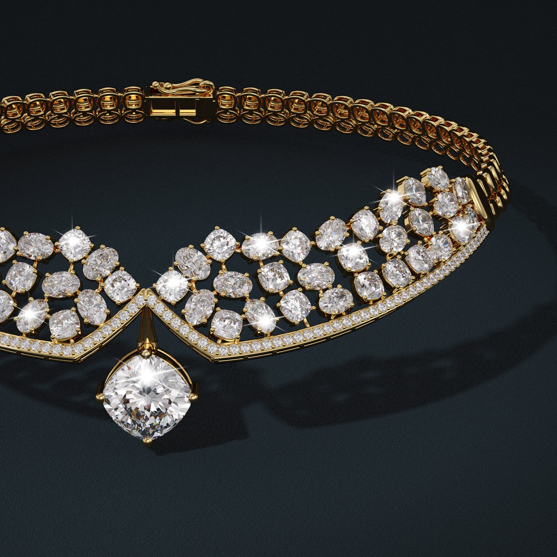 Each stone is individually set by hand, ensuring alignment, proportion, and visual harmony across the necklace. The suspended central diamond acts as a focal axis : a subtle yet powerful gesture that defines the piece without overpowering it.